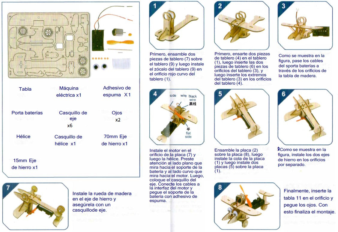 Para mayores de 7 años con ayuda/supervisión de adulto, sobre todo para conectar los 2 cables eléctricos. Incluye baterías.
